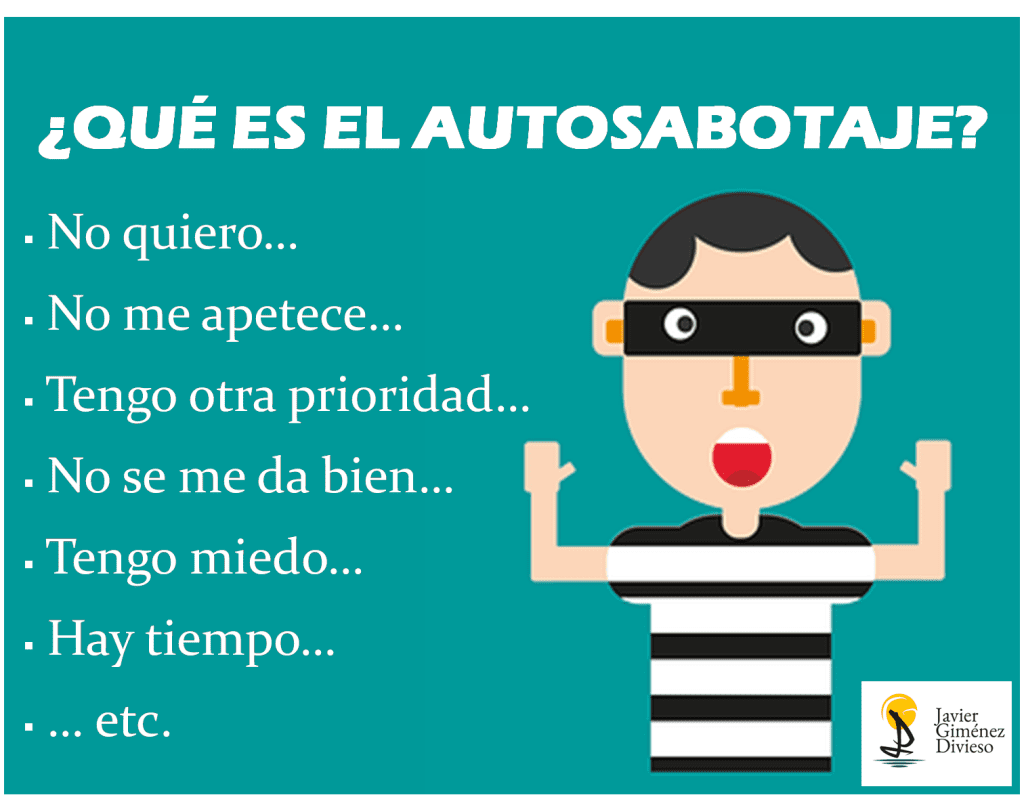 O podrían actuar inconscientemente. Una persona no cumple con una fecha límite de trabajo. A primera vista, parece que llegaba tarde. Pero la verdad es que tiene miedo al fracaso. Se autosabotea al no cumplir con la fecha de entrega, frustrando así su objetivo de ascender en la empresa.