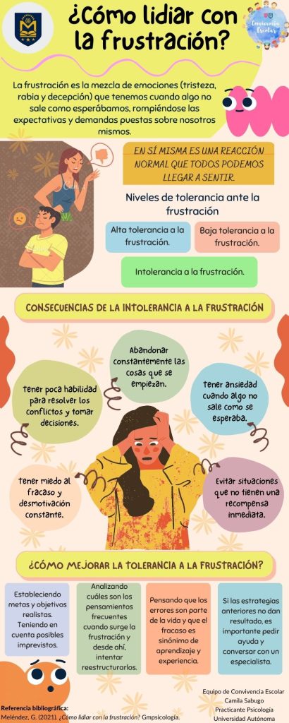 La capacidad de afrontar la frustración se conoce como tolerancia a la frustración. Tener una alta tolerancia a la frustración indica que puedes afrontar los desafíos con éxito, mientras que una baja tolerancia significa que puedes sentirte angustiado ante los pequeños inconvenientes.