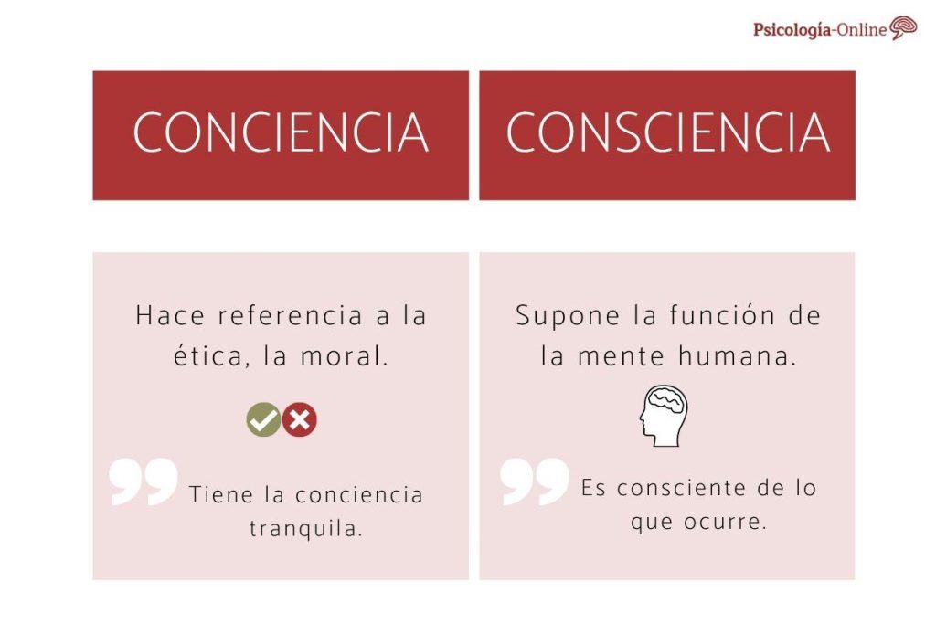 Consciente es un término que se refiere a estar despierto y alerta. La conciencia, por otro lado, se refiere a la conciencia de si las acciones son correctas o incorrectas.