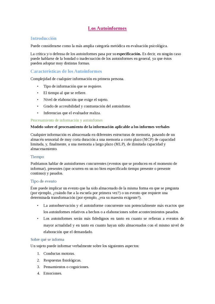 En psicología, un autoinforme es cualquier prueba, medida o encuesta que se basa en el propio informe de un individuo sobre sus síntomas, comportamientos, creencias o actitudes. Los datos de autoinforme se recopilan normalmente en papel y lápiz o en formato electrónico o, a veces, a través de una entrevista. 1
