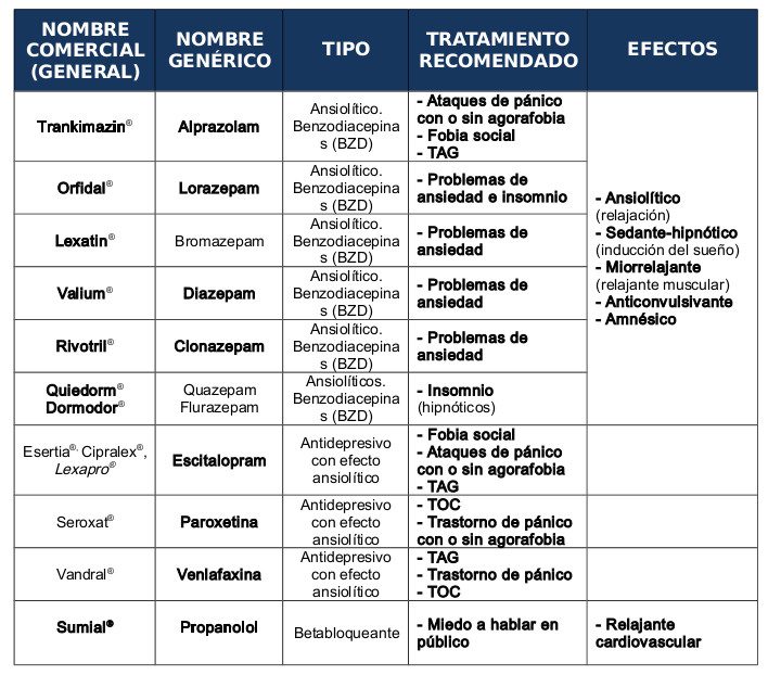 Las benzodiazepinas ralentizan el sistema nervioso central al atacar los receptores del ácido gamma-aminobutírico (GABA) en el cerebro, lo que induce una sensación de relajación. 11 A pesar de los riesgos y efectos secundarios potenciales de estos medicamentos, se ha descubierto que las benzodiazepinas tratan el trastorno de pánico de forma segura y eficaz.