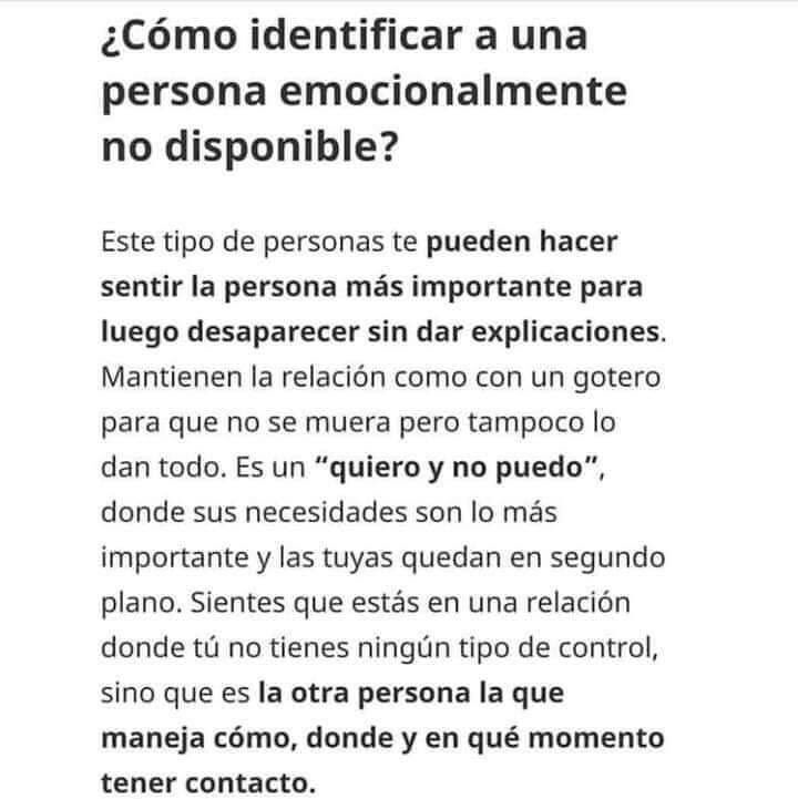 - Experiencias pasadas: las personas pueden volverse emocionalmente inaccesibles si han aprendido en relaciones anteriores que mostrar sus emociones sólo genera dolor y sufrimiento.